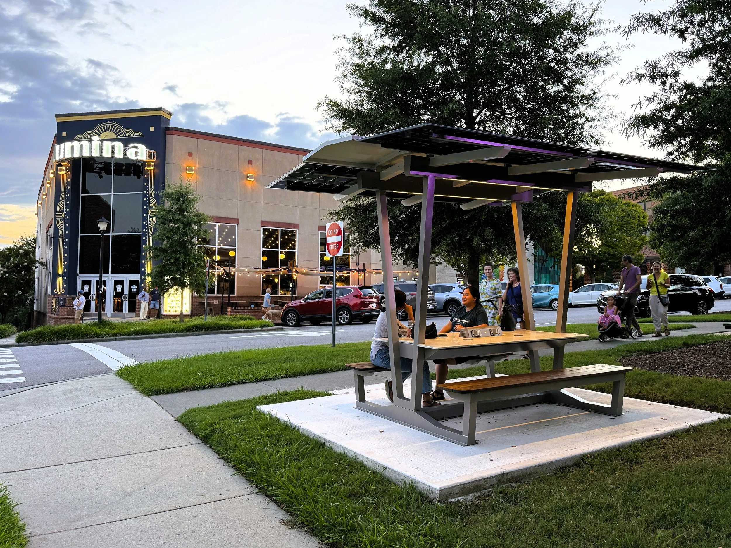 Southern Village is all about community and connection. Their three Haven solar shelters are now part of the community’s daily life, and they provide neighbors with shared spaces to gather, recharge devices and spirits, and experience sustainable design up close.