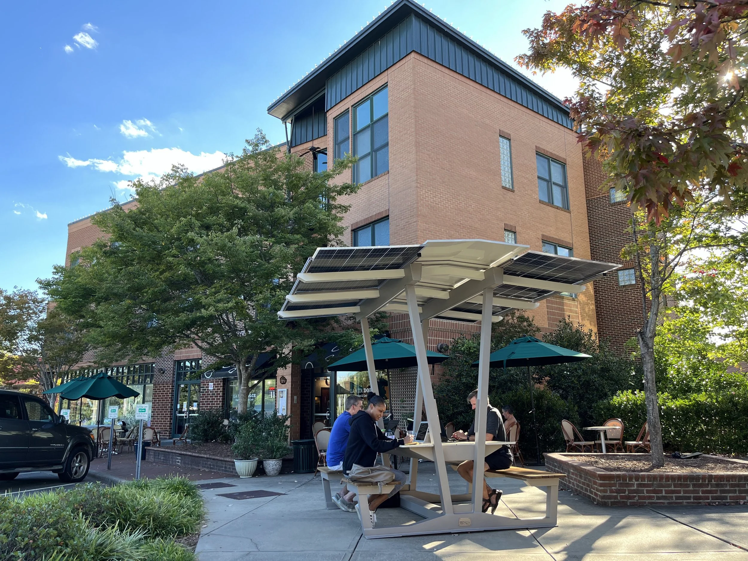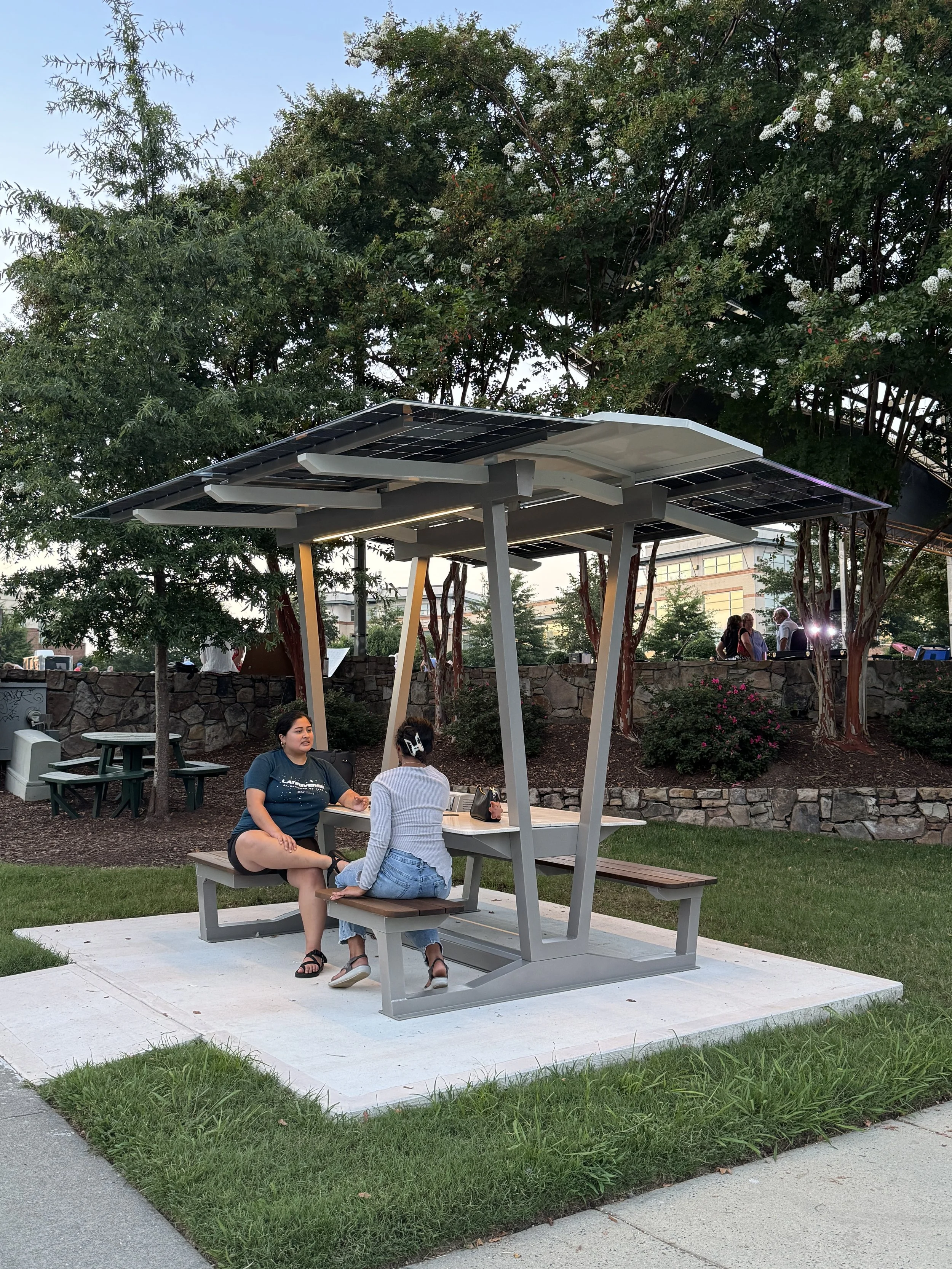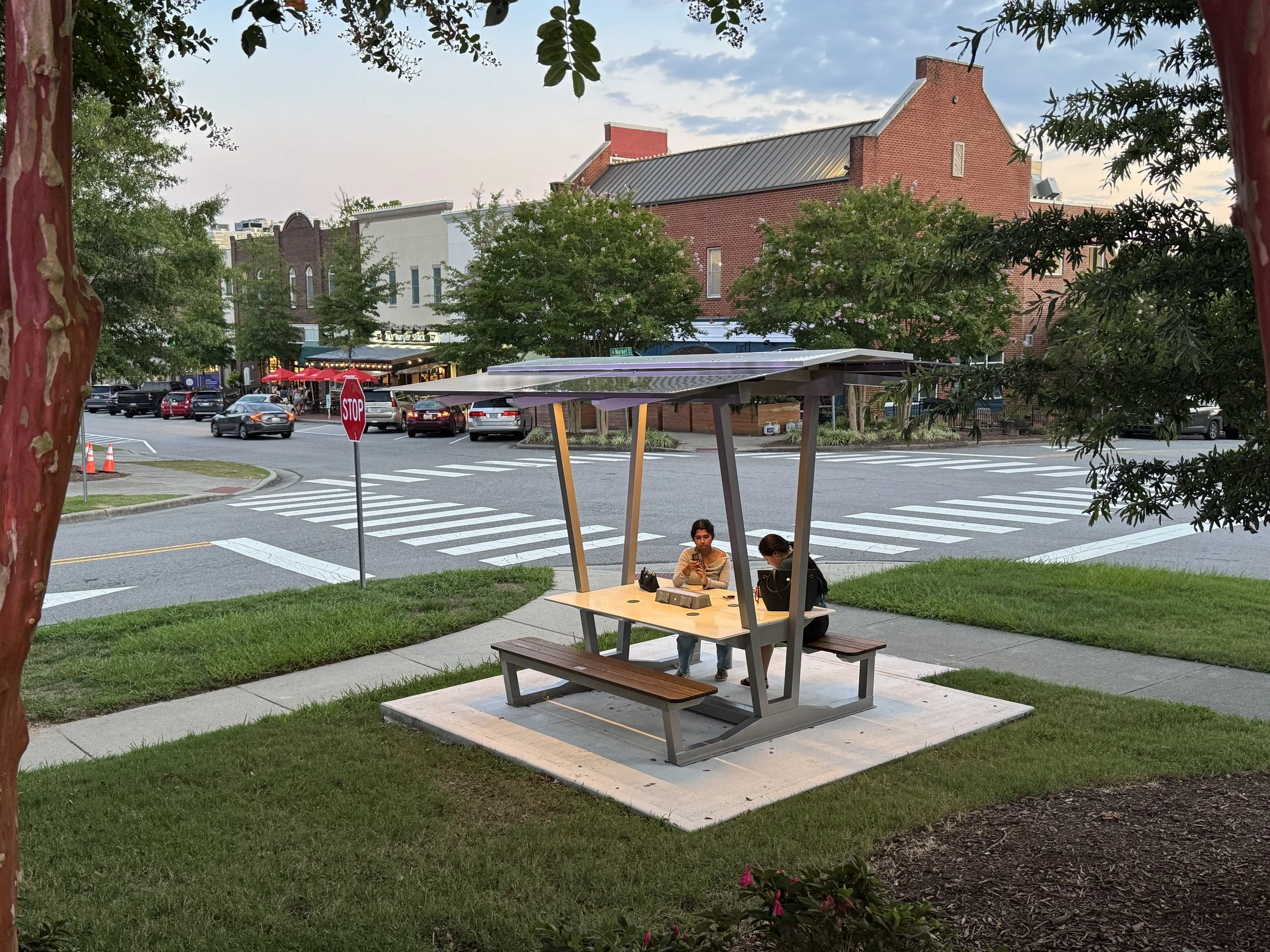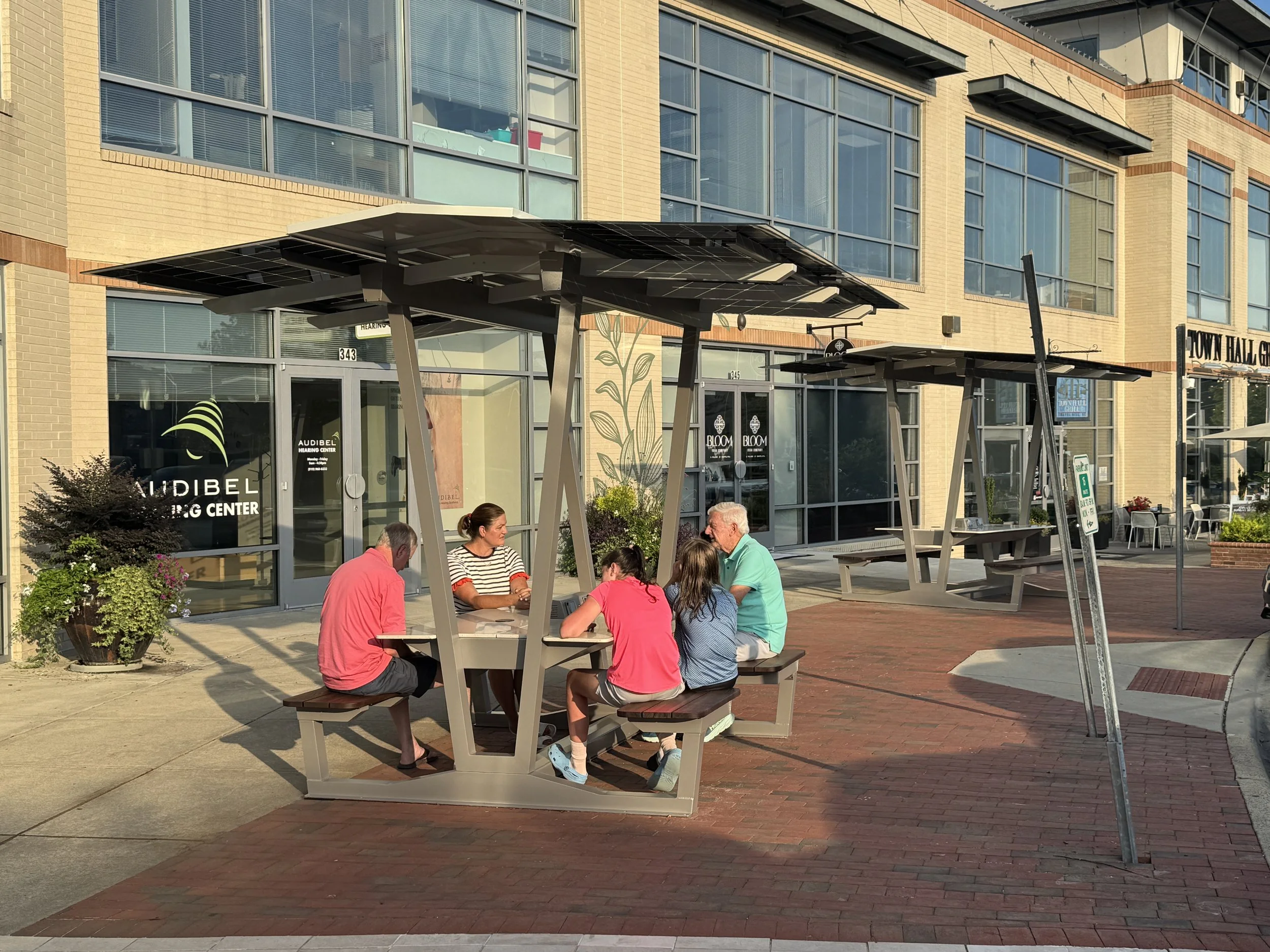 Three Havens now live permanently in Southern Village, and have become part of the rhythm of community life. Neighbors can sit, recharge, meet a friend, or simply enjoy the outdoors, day and night.